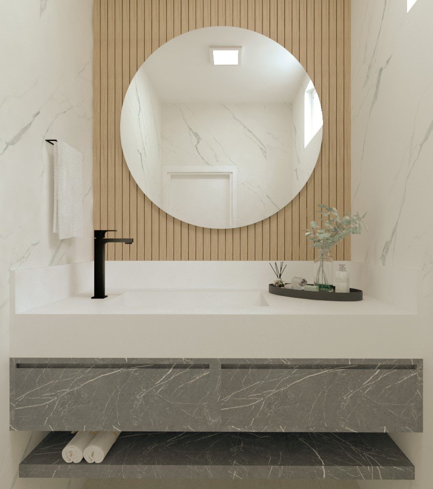 O Espelho Redondo foi criado para adicionar charme e originalidade ao ambiente, proporcionando uma sensação de amplitude e destacando pontos-chave na decoração, especialmente quando combinado com aparadores ou mesinhas. Ele é composto por espelho prata e base em MDF branco, ideal para composições românticas e clássicas para os mais diversos ambientes. Está disponível nas medidas pequena (550x550mm), média (825x825mm) e grande (1100x1100mm), e sua utilização varia de acordo com a necessidade do projeto, por isso é importante avaliar suas características juntamente ao ambiente em que será aplicado, podendo ser utilizado individual ou em conjunto.