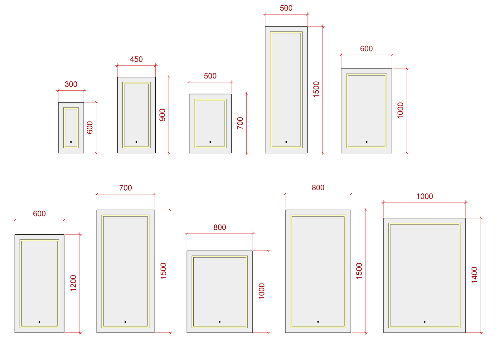- Modelo: Espelho Decorativo Retangular Elegance LED com Botão Touch