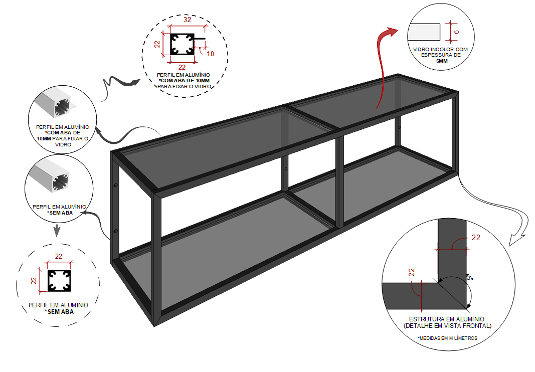 Desenvolvida pela Dublin Complementos, a Estrutura Bancada Aérea Industrial com Prateleira, compõe a Linha Square, criada com o propósito de acompanhar a nova maneira de viver contemporânea, pois com a velocidade em que ocorrem as transformações no mundo atual, acaba sempre ressignificando-se. Pensando nisso, as peças dessa linha possuem soluções que trazem multifuncionalidade para o seu lar e revelam uma nova maneira de morar, unindo praticidade, versatilidade, e simplicidade, e destacam-se por serem extremamente adaptáveis, transitando entre diversos estilos, que vão desde o minimalista ao industrial. Dessa forma, a Estrutura Bancada Aérea Industrial com Prateleira, é composta de alumínio pintando (diversas cores), duas prateleiras e quatro vidros Clear de 6mm, com dimensão de 1478x400x400mm, e apresenta-se como uma peça com alta resistência e durabilidade, sendo leve e suportando à ação do tempo, desatacando-se pela sustentabilidade, já que o alumínio é um material reciclável, com instalação prática e uma vasta quantidade de aplicações, trazendo uma nova cara para o design do seu projeto.