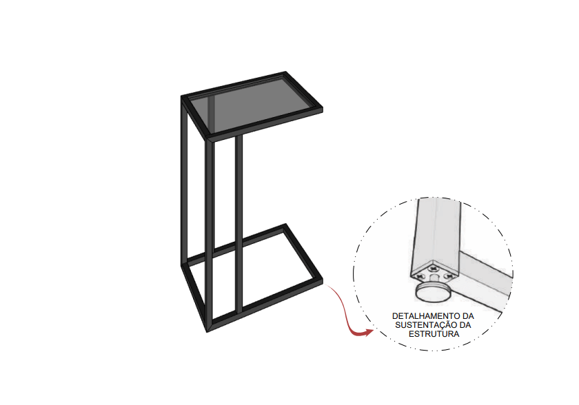 - Modelo: Estrutura Mesa Lateral Industrial com Pé Regulável