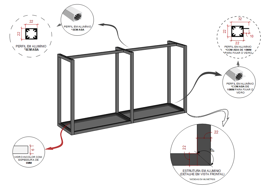 As estruturas da Linha Square, Dublin Complementos são embaladas com um rigoroso processo de qualidade, pois nosso maior objetivo é assegurar que o produto chegue em perfeito estado até a sua casa, e para garantir um transporte seguro, as peças são parcialmente desmontadas, sendo divididas em quadros, que irão com o vidro incolor de 6mm fixado e os encaixes que irão soltos, podendo ser montadas facilmente com o auxílio de um manual de instruções, que será encaminhado juntamente com o produto.