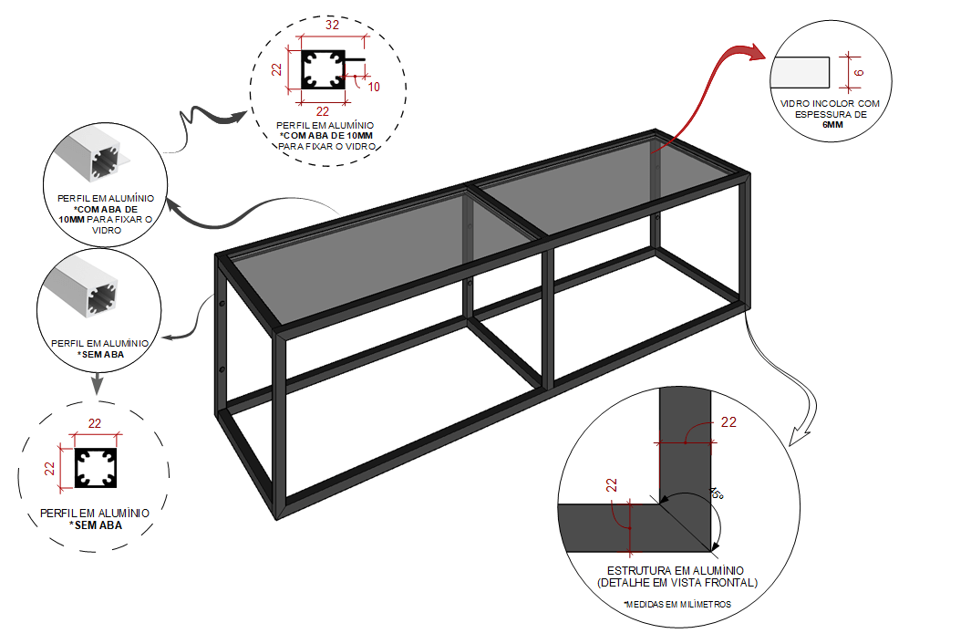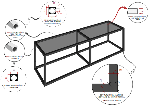 - Material: Alumínio e Vidro