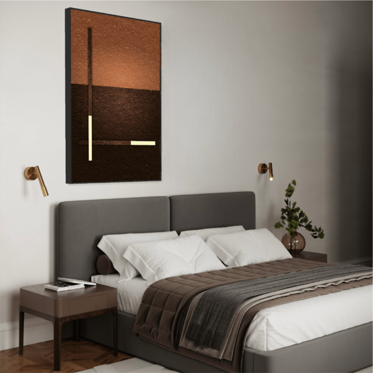 O quadro "Abstrato Laranja e Marrom Folha de Ouro" é uma obra que incorpora folhas de ouro aplicadas à superfície do quadro, criando um efeito visual deslumbrante. É uma peça única e sua aplicação em quadros é frequentemente usada para agregar um toque de sofisticação, luxo e riqueza estética. Possui moldura de madeira em canvas e está disponível em diversas medidas.