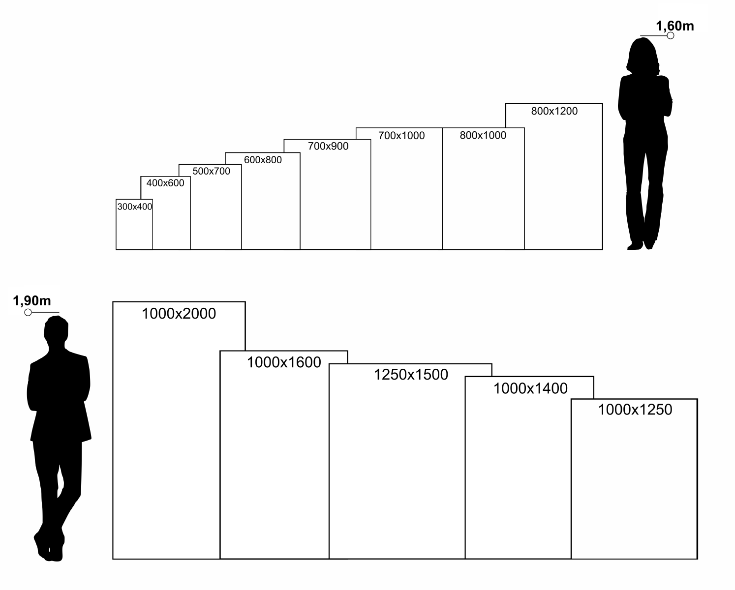 Os quadros de nossa Linha Decorativa estão disponíveis nas seguintes medidas: