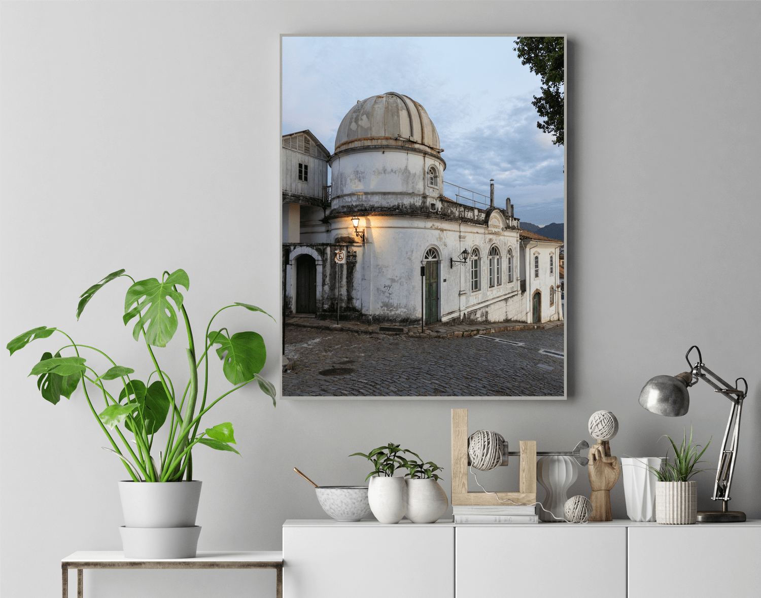 Desenvolvido pela Dublin Complementos, juntamente com o artista e fotógrafo Ivan Araújo, o quadro "Casa de Esquina" é uma obra única por possuir moldura slim em alumínio com acabamento pintado, no vidro Clear 4mm e impressão digital de alta qualidade, feita diretamente no vidro e está disponível em diversos tamanhos, com as medidas em milímetros.