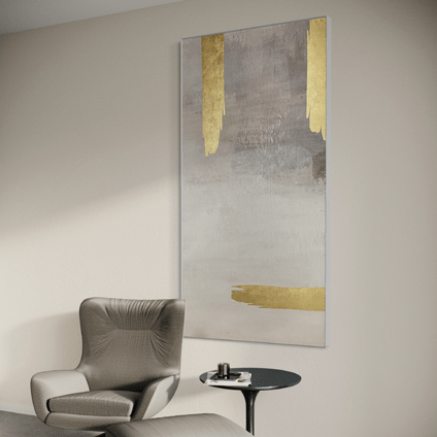 O quadro "Degradê Folha de Ouro" é uma obra que incorpora folhas de ouro aplicadas à superfície do quadro, criando um efeito visual deslumbrante. É uma peça única e sua aplicação em quadros é frequentemente usada para agregar um toque de sofisticação, luxo e riqueza estética. Possui moldura de madeira em canvas e está disponível em diversas medidas.