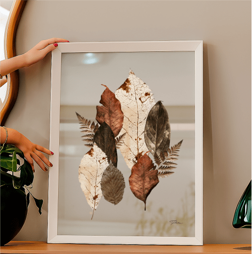 Desenvolvido pela Dublin Complementos junto com Estúdio Flora, o quadro "Folhas do Outono", é um retrato da serenidade que existe nas pausas da natureza, onde as folha, já douradas e serenas, lembram a beleza que existe no ciclo natural das coisas: no desprender, no renovar, no recomeçar. Em tons neutros e suaves, celebra a delicadeza da estação em que o silêncio da natureza se transforma em arte. Possui moldura robusta em alumínio com acabamento pintado, no vidro Clear 4mm (Transparente) e impressão digital de alta qualidade, feita diretamente no vidro e está disponível em diversos tamanhos, com as medidas em milímetros.