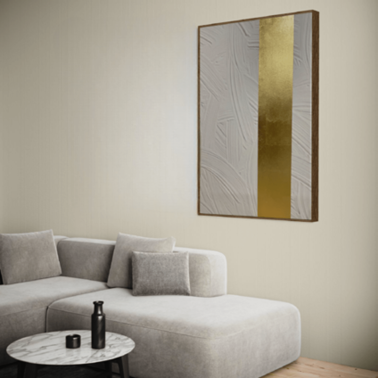 O quadro "Formas e Texturas Folha de Ouro" é uma obra que incorpora folhas de ouro aplicadas à superfície do quadro, criando um efeito visual deslumbrante. É uma peça única e sua aplicação em quadros é frequentemente usada para agregar um toque de sofisticação, luxo e riqueza estética. Possui moldura de madeira em canvas e está disponível em diversas medidas.