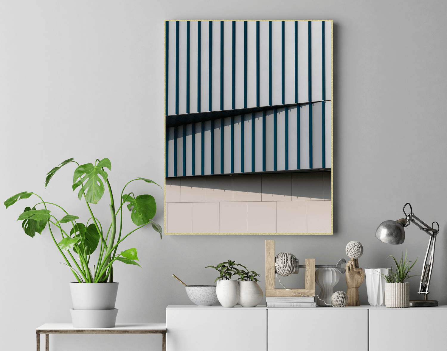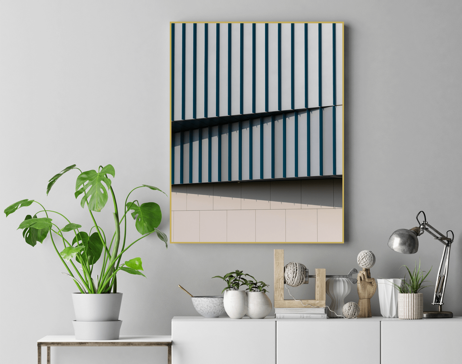Desenvolvido pela Dublin Complementos, juntamente com o artista e fotógrafo Ivan Araújo, o quadro "Luz, Sombra e Geometria em Fachada Contemporânea" é uma obra única e destaca-se por possuir moldura slim em alumínio com acabamento pintado, no vidro Clear 4mm e impressão digital de alta qualidade, feita diretamente no vidro e está disponível em diversos tamanhos, com as medidas em milímetros.