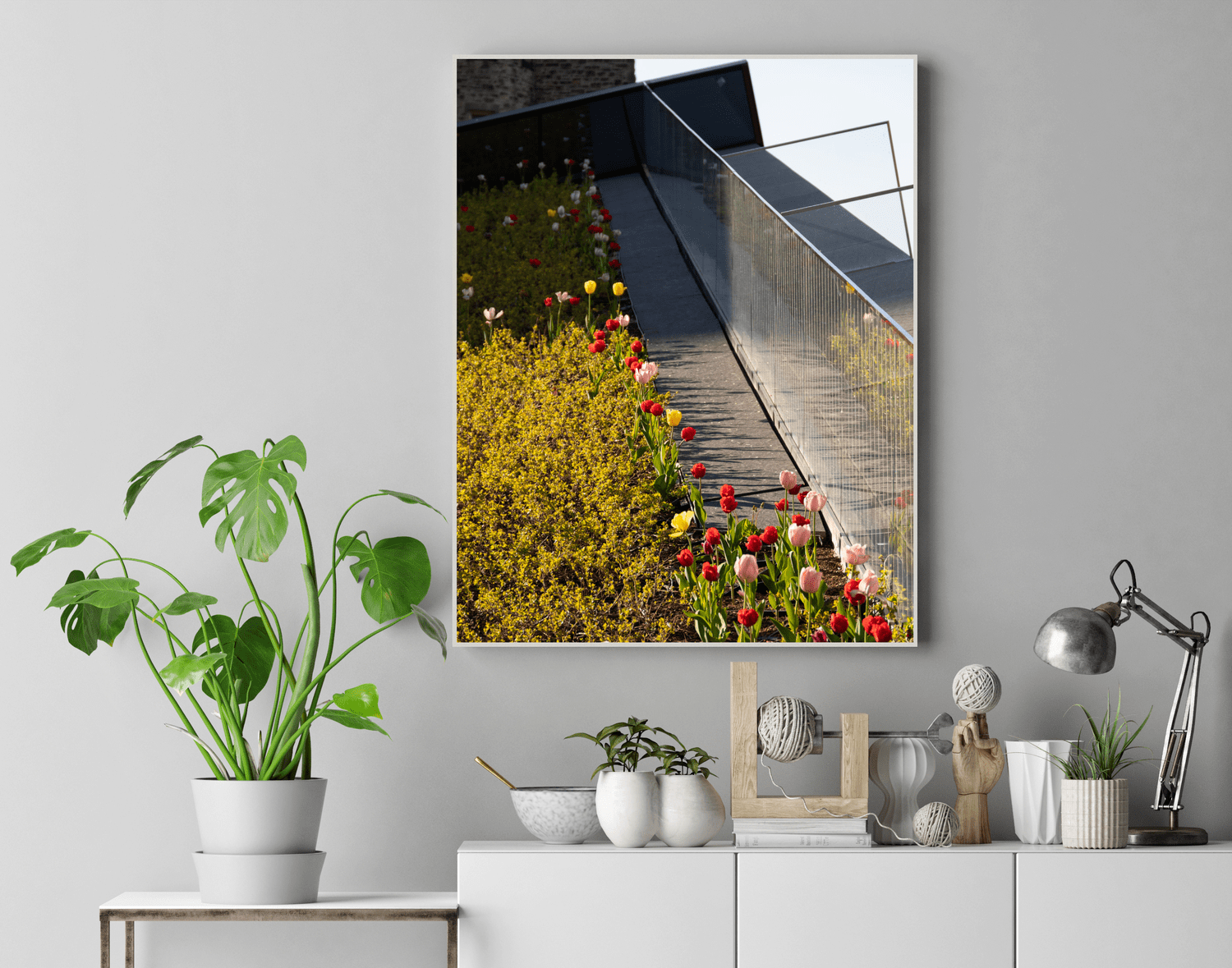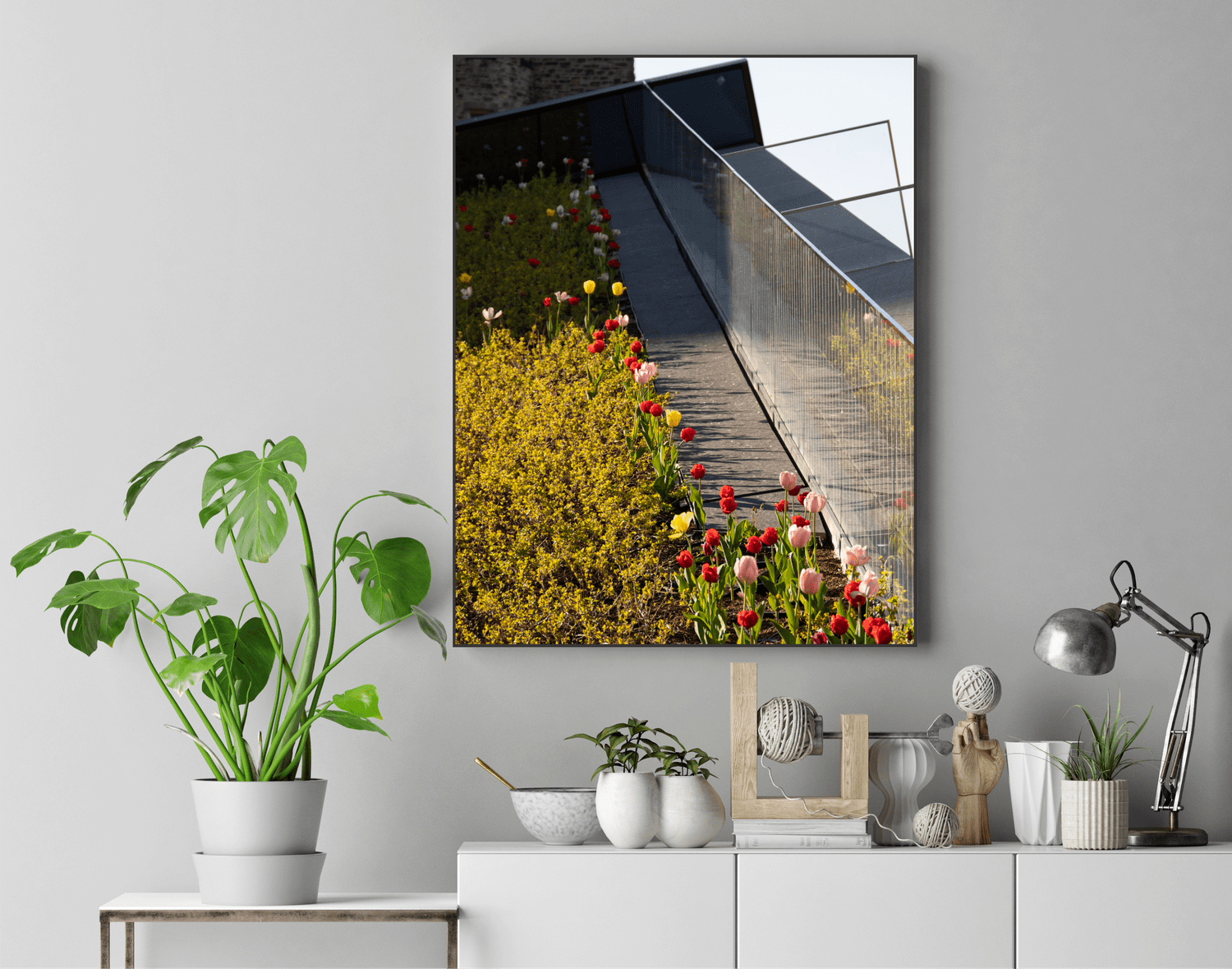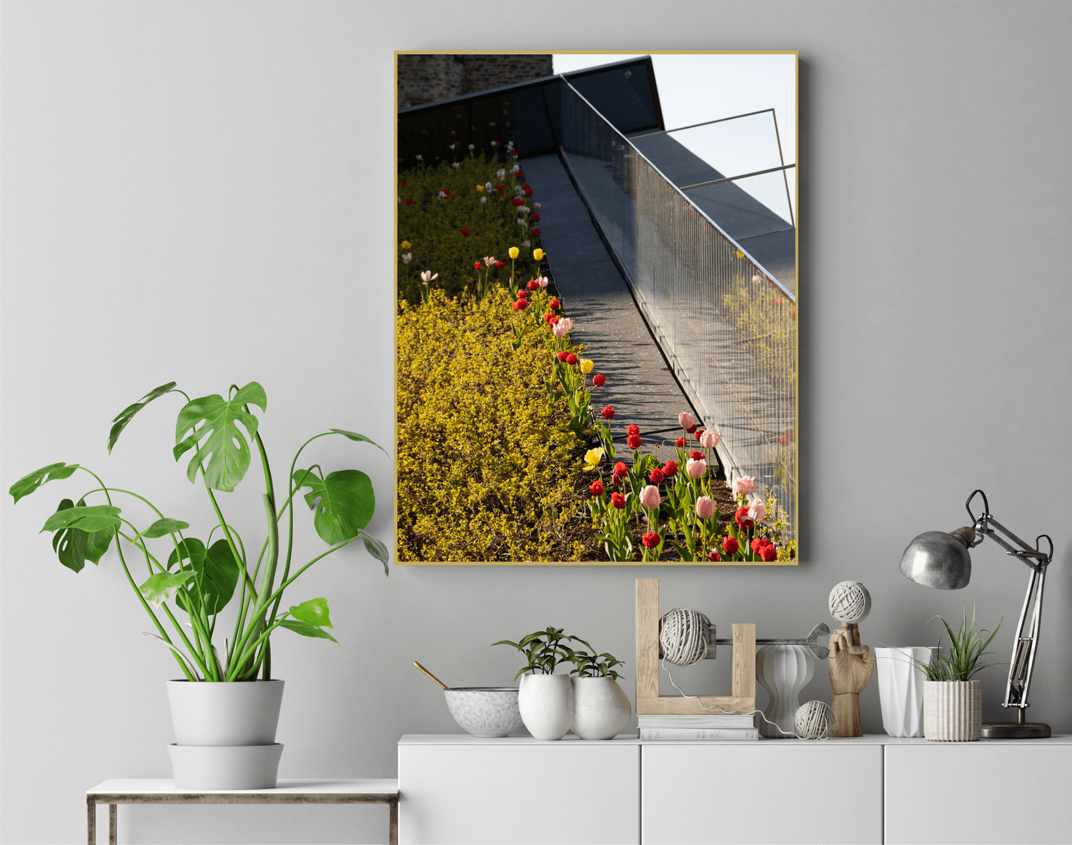 Desenvolvido pela Dublin Complementos, juntamente com o artista e fotógrafo Ivan Araújo, o quadro "Tulipas no Final da Tarde da Primavera de Ottawa" é uma obra única e destaca-se por possuir moldura slim em alumínio com acabamento pintado, no vidro Clear 4mm e impressão digital de alta qualidade, feita diretamente no vidro e está disponível em diversos tamanhos, com as medidas em milímetros.